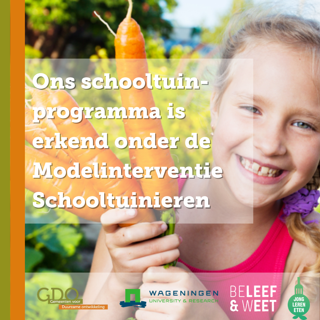 Het HWL Schooltuinprogramma 'BuitenLokaal' gericht op groep 5/6 is erkend onder de Modelinterventie Schooltuinieren. Dat betekend tuinieren met impact!