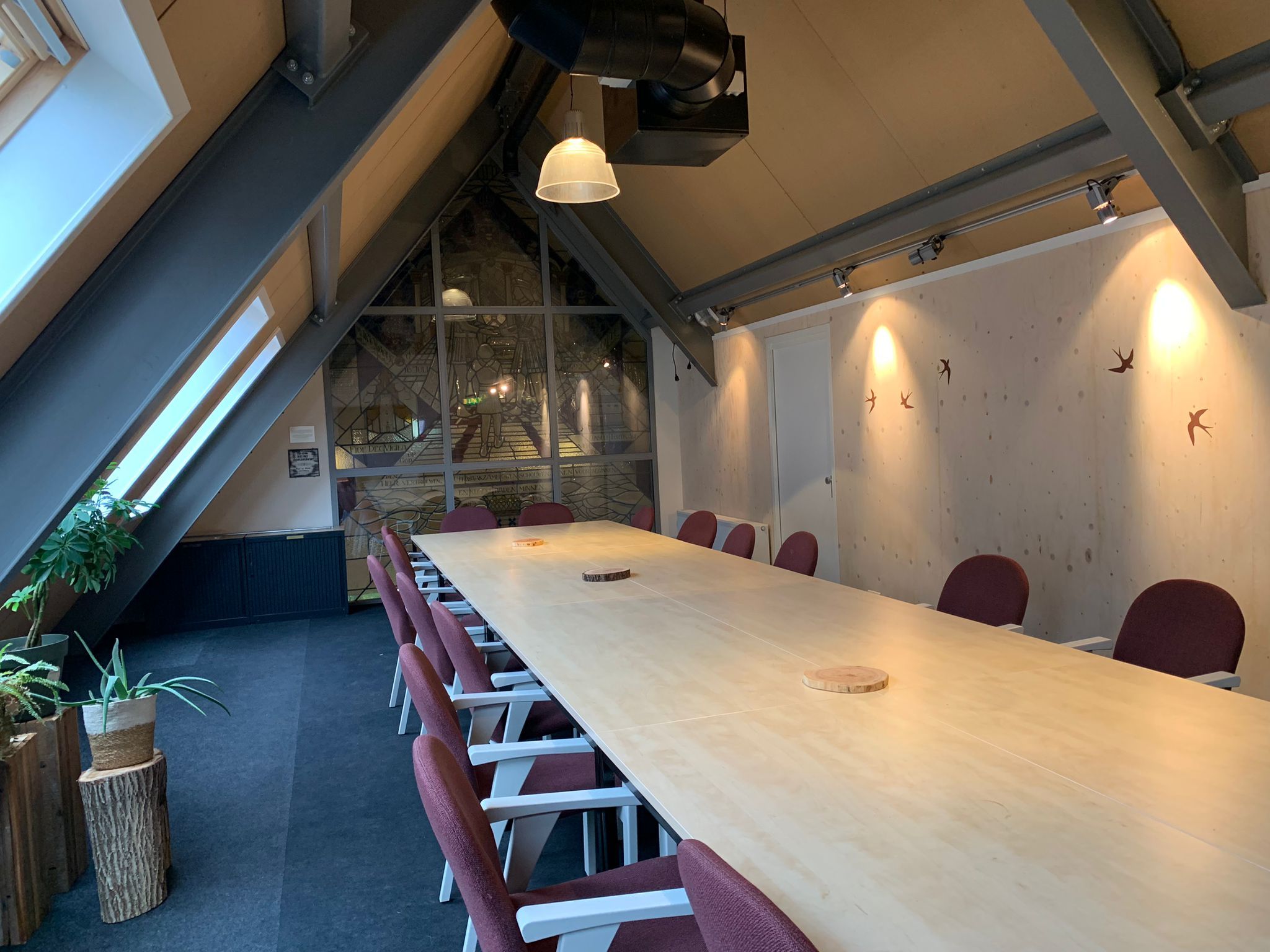 Boven bevindt zich een kleinere zaal, De Ambachtsheerenzaal. Deze zaal, voorzien van een prachtig oud glas-in-lood raam van de Ambachtsheerlijkheid Cromstrijen, is een bijzondere vergaderruimte en geschikt voor gezelschappen tot circa 25 mensen. De ruimte ligt geïsoleerd van de andere ruimten in het gebouw en is te bereiken via een trap. De ruimte is voorzien van een Tv-scherm. HDMI-aansluitingen voor multimedia-presentaties zijn aanwezig.
