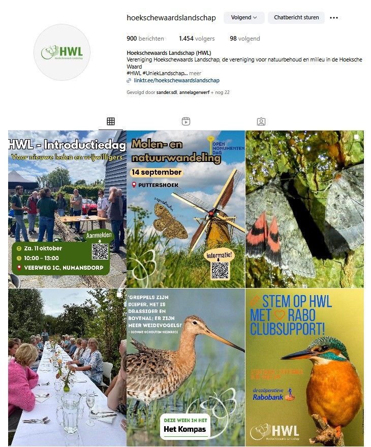 Hoekschewaards Landschap (HWL) zet zich in voor natuur, landschap en erfgoed in de Hoeksche Waard. Met 1.700 leden en een groot netwerk van vrijwilligers zijn we een actieve, betrokken vereniging. We brengen onze activiteiten en verhalen graag (online) onder de aandacht om onze zichtbaarheid te vergroten – en daar kun jij een belangrijke rol in spelen!
